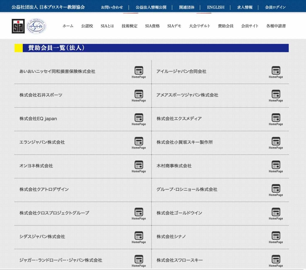 協賛:公益社団法人日本プロスキー教師協会(SIA)に協賛|賛助会員