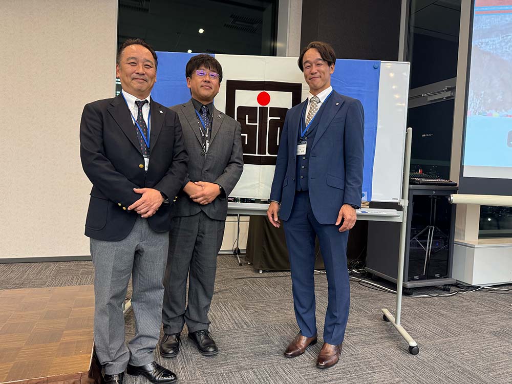 公益社団法人日本プロスキー教師協会 会長 杉山公宣様(左)、アイルージャパン合同会社 代表 山田芳尚(中央)、SIAデモンストレーター/理事 長谷川勝彦様(右)